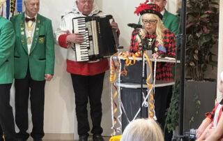 Einen närrischen Nachmittag erlebten unsere Bewohnerinnen und Bewohner Ende Januar im Restaurant „Im Quartier“. Das diesjährige Motto der Prunksitzung war eine Reise durch den Freizeitpark. Der Narrensamen tanzte zu dem Song „Candyshop“, was den Zuschauern eine besondere Freude bereitete. Anschließend waren der Elferrat mit Andreas Paul am Klavier mit „Major . . .