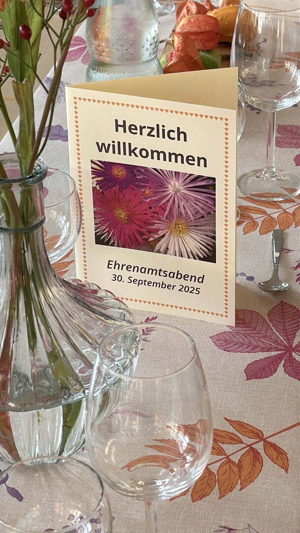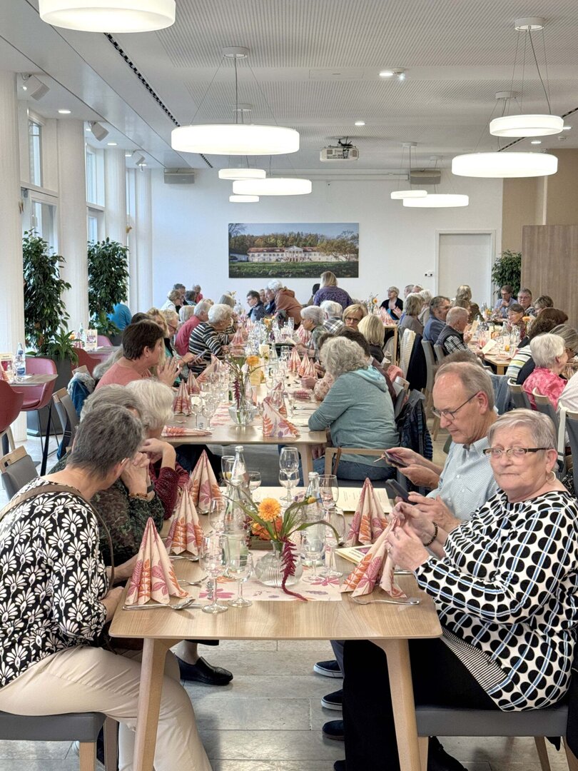 Bereits um 18 Uhr wurden die Gäste im Foyer mit einem Glas Sekt herzlich empfangen. Im Restaurant „Im Quartier“ erwartete die Ehrenamtlichen anschließend ein liebevoll zubereitetes Menü. Der herbstliche Auftakt bestand aus einem frischen Salat und einer aromatischen Kürbiscremesuppe. Als Hauptgang wurde ein zartes Hirschedelgulasch mit Waldpilzen, Rotkohl und Spätzle serviert. Für die vegetarischen Gäste gab es eine raffinierte Kombination aus zweierlei Ravioli – mit Trüffel- und Feigenfüllung – auf einem Zucchini-Kirschtomaten-Ragout.