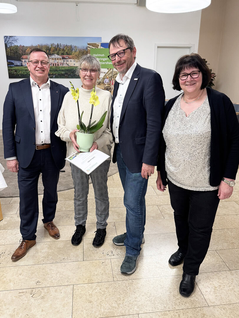Ein großer Dank für 20 Jahre Betriebszugehörigkeit ging an Sabrina Reichert, die als „Kücken“ zu uns kam und heute als Wohnbereichsleitung arbeitet. Joachim Bieringer, der als Küchenleiter das Küchenteam leitet und für das leibliche Wohl unserer Bewohner*innen Sorge trägt wurde ebenfalls geehrt. Auch Agnieszka Andres (Präsenzkraft) und Zija Kukuruzovic (Küchenhilfe) wurden für ihre langjährige Zugehörigkeit gewürdigt.